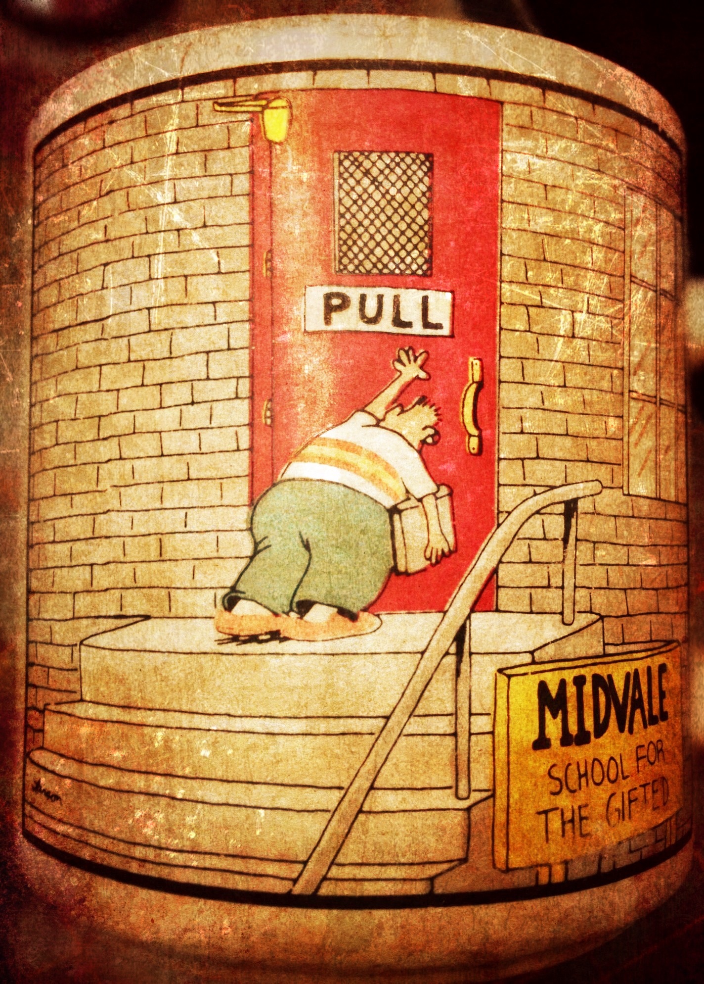I love this, and I have to tell you–I actually had this experience in First Grade, went crying home to tell mom I couldn’t open the door….